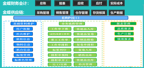 在系統(tǒng)上線階段,從簡單到復(fù)雜,先上財(cái)務(wù)供應(yīng)鏈等基礎(chǔ)模塊,讓各部門初步接觸并逐漸適應(yīng)ERP的日常工作模式,并在穩(wěn)定的應(yīng)用過程中導(dǎo)入車間MES系統(tǒng),從排程、投料到下機(jī)、檢驗(yàn)、再到復(fù)卷、入庫等過程控制,實(shí)現(xiàn)深度應(yīng)用!