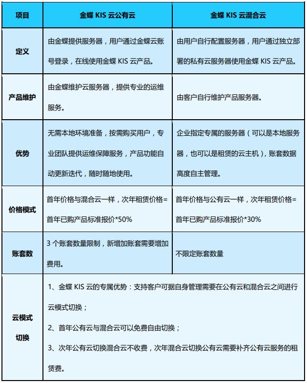 金蝶KIS云包含公有云和混合云兩種租賃模式